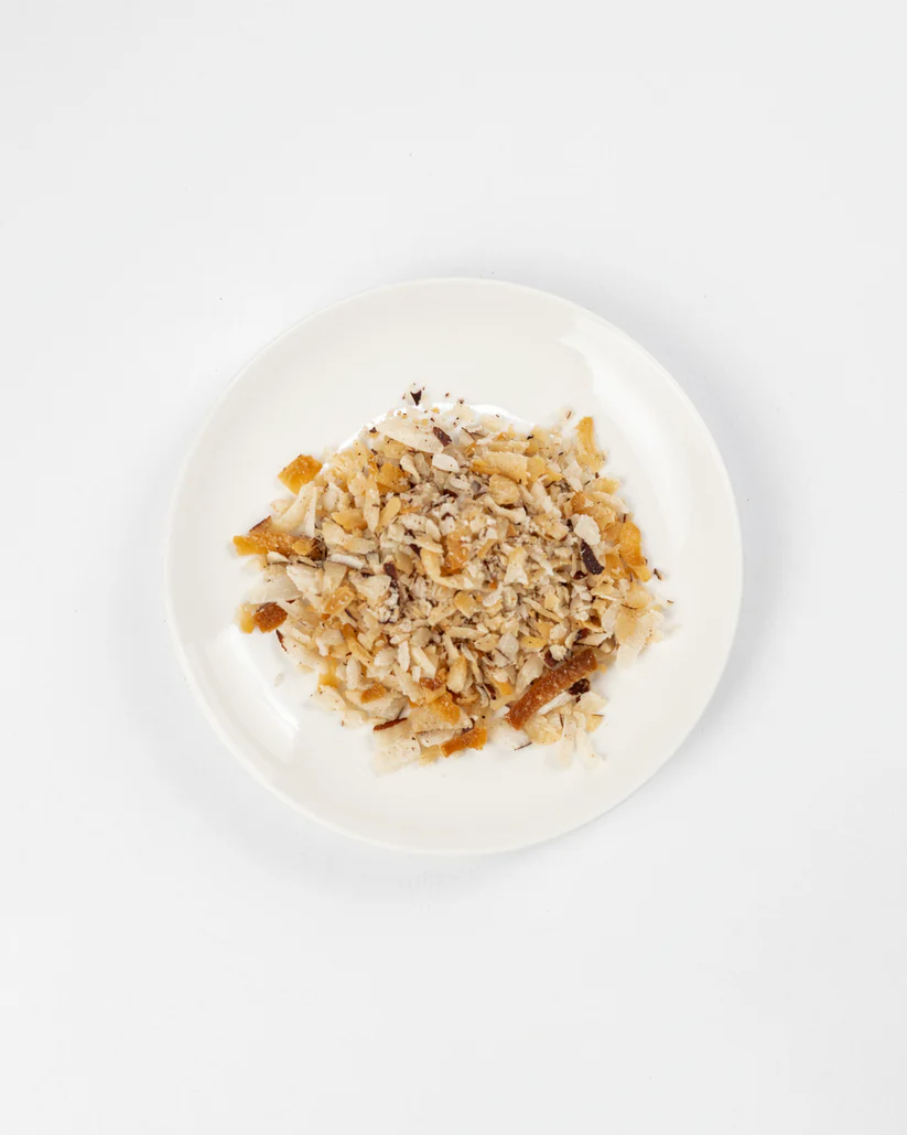 20g of freshly baked Coconut flakes, nicely packed in a transparent pack.